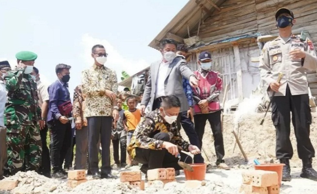 Martapura, Kalsel – Gubernur Sumatera Selatan Herman Deru melakukan peletakan batu pertama program bedah rumah warga tidak layak huni di Desa Bantan, Kecamatan BP Peliung, Kabupaten Ogan Komering Ulu (OKU) Timur.