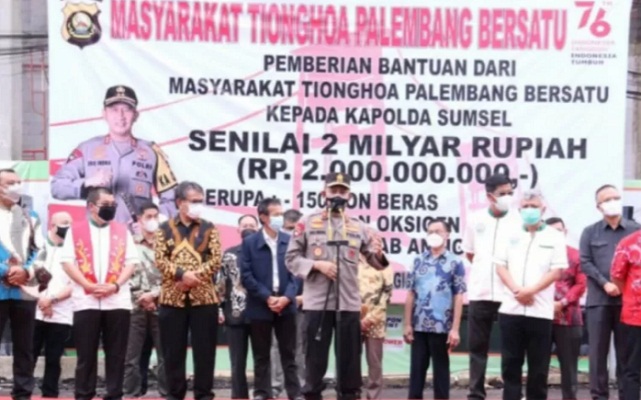 Palembang – Masyarakat keturunanTionghoa di Kota Palembang menyerahkan bantuan berupa beras dan barang lainnya senilai Rp2 miliar ke Polda Sumatera Selatan untuk membantu masyarakat yang terdampak COVID-19.