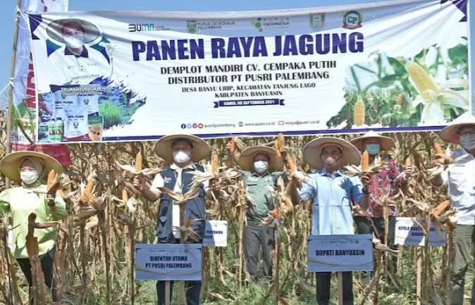 Direktur Utama PT Pusri Tri Wahyudi Saleh dalam kegiatan panen raya jagung di Desa Banyu Urip, Kabupaten Banyuasin, Kamis, mengatakan dengan adanya kawalan teknologi oleh Pusri maka terjadi peningkatan hasil panen jagung dari 7 ton menjadi 8,5 ton per Hektare.
